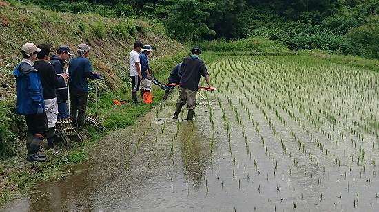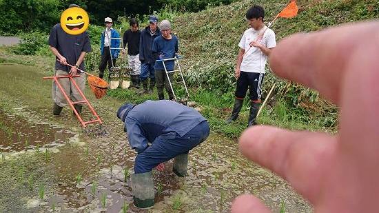午後は田んぼの稗を浮かして回収する作業を行いました(*’ω’*)