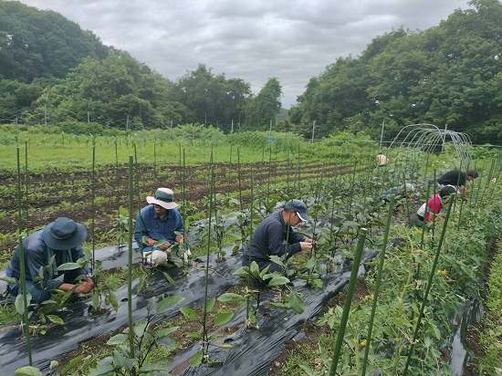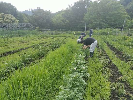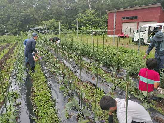 日々の活動記録本日午前の作業は、畑でジャガイモの芽かき、ナスなどの誘引、ネギの仮定植!