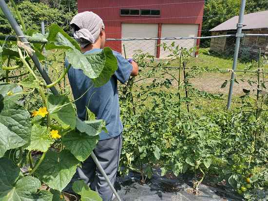 日々の活動記録本日午前の作業は、お風呂掃除、畑の水やりと収穫、誘引!