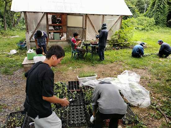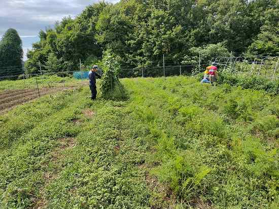 本日午前の作業は、田んぼの電柵下草むしりとキャベツの一本立ち!