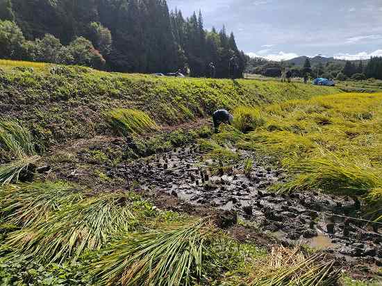 10/2(木) 作業 日々の活動記録 2025.10.02本日は一日、田んぼで排水路作りと手刈りを行いました(+_+)倒れていても泥のついていない稲を手で刈りつくす地道な作業を皆さん頑張っていました(T_T)沼っている場所は本当に地獄ですwwお疲れ様です。