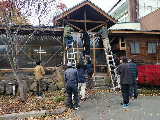 本日は一日、雪囲いのビニール張りを行いました(^O^)/
