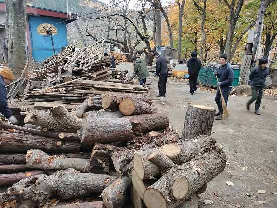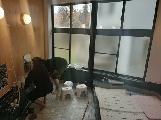 本日午前の作業は、お風呂掃除と落ち葉集め!