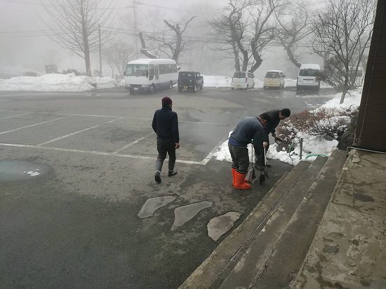 本日は一日、館内清掃及び客室セッティングと薪運びなどを行いました(^-^)