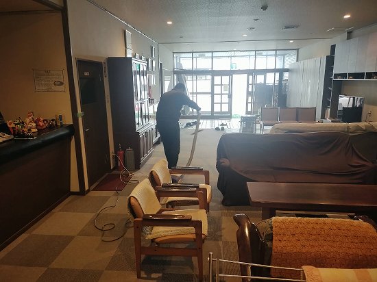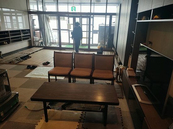 本日午前の作業は、館内清掃及び客室セッティングと薪運び!