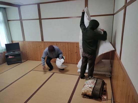 午後は、館内清掃及び客室セッティングと落ち葉拾いを行いました(・∀・)